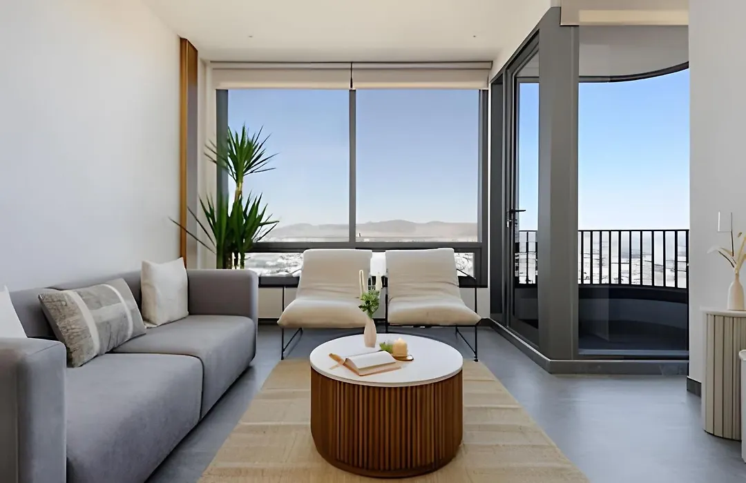 El diseño interior viene con escritorio, así como TV con múltiples canales. Para mayor comodidad, se incluye secador de pelo.